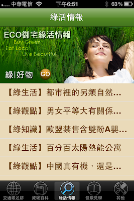 此外,我們的ECO御宅綠活情報,也已在這個APP裡面推播,讓大家透過手機,也可以輕鬆看到我們所分享的綠活趨勢與書寫。當然,裡面也可以直接連到我們綠好物的線上商店。
