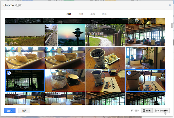 這時候我甚至可以進入 Google 相簿的相簿資料夾,一次選擇多個相簿直接內嵌到郵件裡。