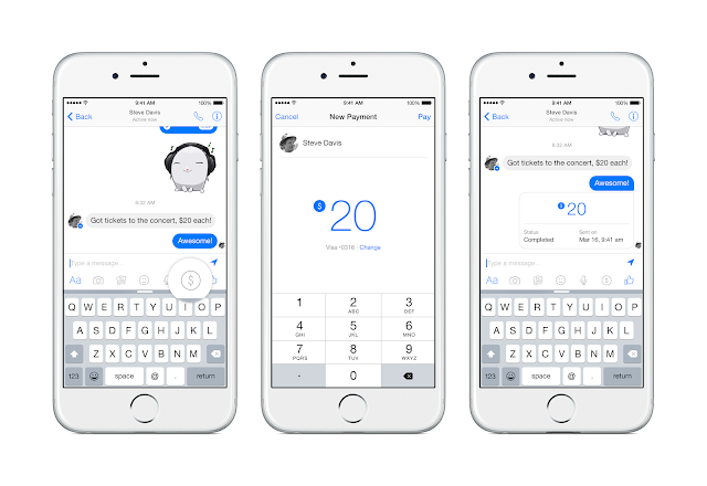 Facebook訊息App推出新服務:行動轉帳(Peer-to-Peer Payments),只要先設定好自己的簽帳卡資訊(Debit Card),就能在與朋友的對話視窗中,轉帳給對方。轉帳的手續,就跟傳張照片那樣簡單。