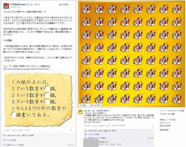 解開謎題的喜悅、強調「我解開了」的自我主張、「希望別人也能試試看」的心情,或是像「這太難了誰來幫我」等,在互相交流當中會傾向將貼文分享出去。