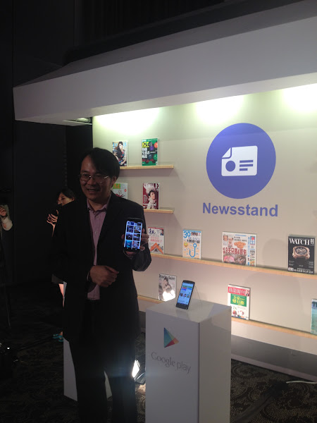(圖說:Google台灣董事總經理簡立峰,於現場使用Google書報攤App。圖片來源:數位時代James攝影。)