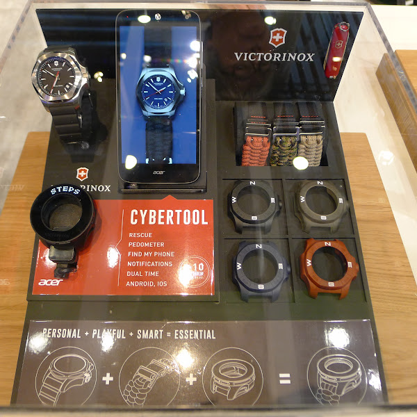 此次宏碁與Victorinox合作的產品,是定位為I.N.O.X.手錶的智慧配件(Cyber Tool),套上之後,傳統手錶立刻一秒變身智慧手錶,具備4大領域功能:一般的「手錶」功能外,還有一般智慧手錶具備的「健康健身」,可以計步、距離、計算卡路里,「Business」的來電顯示、訊息或Email通知、以及「工具」的發送求救通知、以及尋找手機等功能。智慧錶框是利用藍牙與手機對接,並透過手機APP設定相關功能或指令,電池續航力可達5~7天。