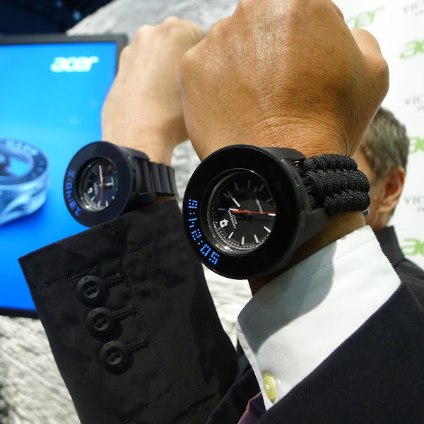 穿戴裝置市場進入大亂鬥,功能簡單、塑膠感重的低價手環滿街跑,也有像蘋果Apple Watch、華碩ZenWatch的智慧手錶,不過宏碁很有可能走出一條新路,在世界行動通訊大展(MWC)上發表與瑞士維氏腕錶(Victorinox Swiss Army)合作的智慧錶框,只要把它套在一般的手錶上,立刻就能有智慧手錶的功能。