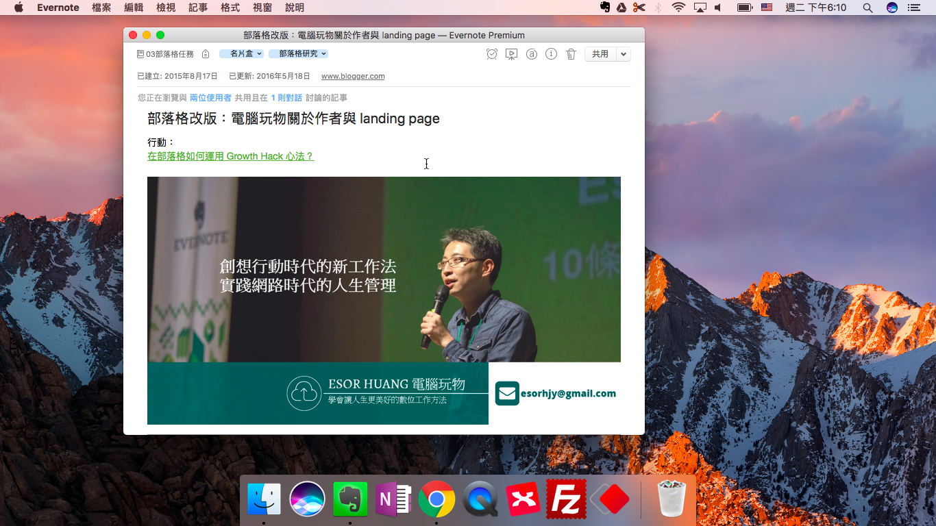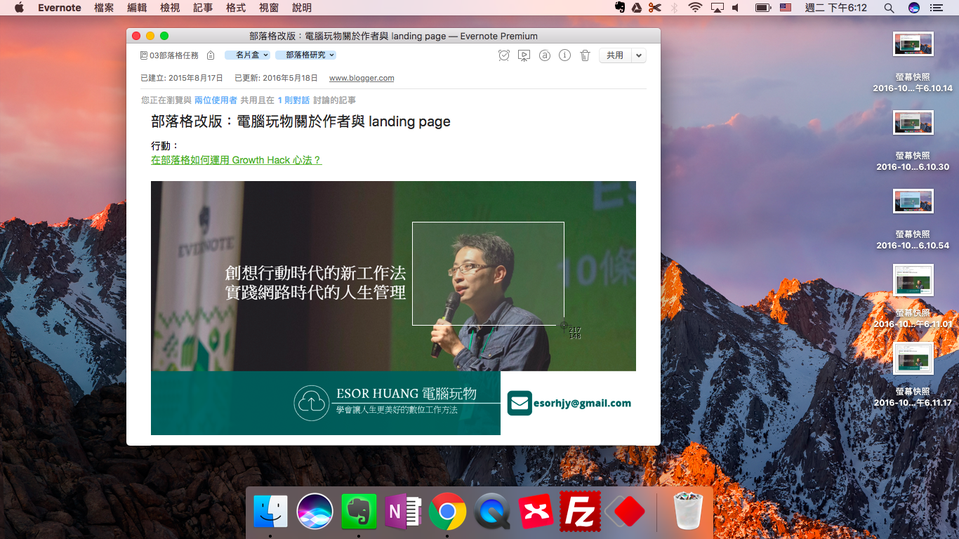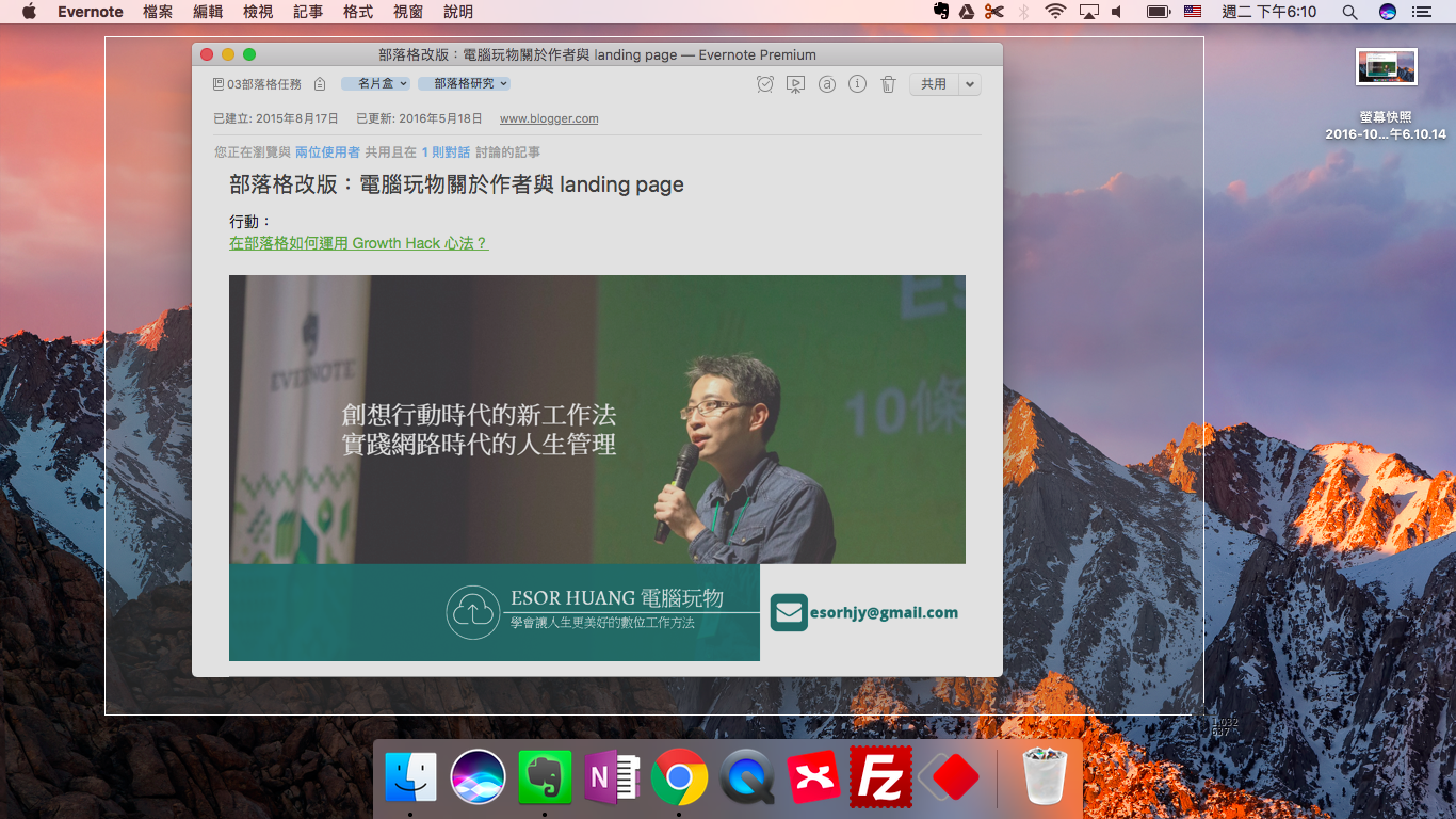 最近在一堂教學課程中,有學員想跟我要目前的 Evernote 分類清單做為觀摩,我現場立即截圖傳給他,結果引發了這位朋友另一個好奇的問題:怎麼好像老師沒開截圖軟體,一秒鐘就完成截圖?