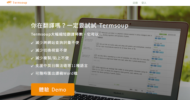 你在工作上有翻譯文章的需求嗎?或許可以試試看這個提升翻譯工作生產力的「 Termsoup 」。