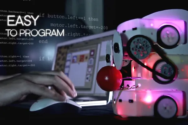 有甚麼比讓孩子實際接觸機器人更能促進學習動機?Thymio 就是一台可以讓小孩愛上程式設計的機器車, Thymio 內建一些簡單的基本行為:跟著手走(或任何前方在移動的東西)、躲避前方障礙不撞牆,或是按照著身下的一條線位移。讓小孩先對這台小小七彩機器車產生興趣-等到開始好奇背後的原因時,再趁機灌輸較進階的程式設計概念,讓他們按著自己的創意任意設計機器行為。