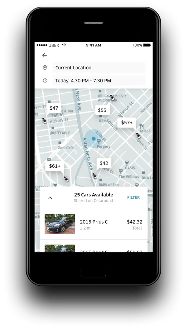 Uber Rent讓Uber用戶能夠短租他人私有的空車輛。