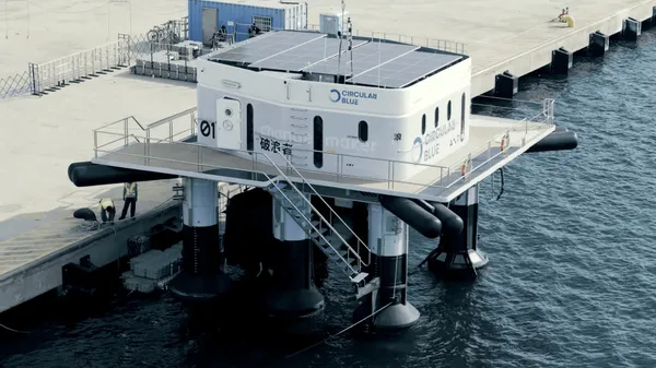 在高雄興達港,一座巨大、造型奇特的人工海上島靜靜漂浮著,光看外型恐怕很難想像,這是一座「海上掃地機器人」。