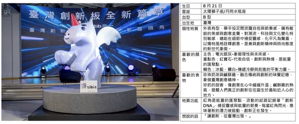 tibit 的設計理念,是將「臺灣的創新能量」具象化為一個蓄勢待發的能量生命體,傳達臺灣創新是一種跨領域的混合能力,也相信臺灣的未來值得奔向全世界。tibit 的設計細節是創新板精神的語言:紅寶石獨角的發光,象徵創新的火花被發現也代表臺灣創新板在關鍵時刻照亮潛力企業。翅膀則代表加速度與國際移動力,讓臺灣創新成為全球語言。其身上的科技紋理,體現臺灣在半導體及 AI 上的強大基礎。tibit 的存在,就是陪伴創新者的一束光。