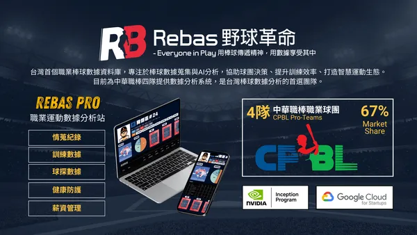 在中華職棒的賽場上,傳統的肉眼觀察與經驗判斷已不足以應對高強度的數據化對抗。野球革命Rebas Sports正是瞄準了這個痛點,成為臺灣第一個專注於職業運動數據分析的科技團隊,他們的核心價值是建立亞洲最完整的棒球數據資料庫與智慧化分析系統,並以「讓數據改變運動決策」為核心理念。野球革命Rebas Sports的技術力量來自於整合各種國際品牌的運動追蹤設備,並自行研發影像辨識與自動標註演算法,能將比賽與訓練的影像即時轉化為可量化的資料。系統目前已被中華職棒六隊中的四隊採用,應用於比賽情蒐、球員表現追蹤、薪資管理,甚至球探資料管理等面向。