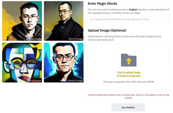 用戶只需要輸入文字或上傳照片,AI 會自動生成一張照片,並可鑄造成 NFT,鑄造數量限 10,000 個,短短 2 個半小時內就被搶光。幣安官方表示此服務仍在測試階段,目前正在提升伺服器能力,並增加鑄造時的流暢性。想要體驗的用戶仍可加入等待名單,日後推出完整功能版本時可以使用。