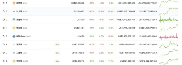 近期比特幣、以太坊領頭,主流加密貨幣市場出現行情回溫,其中比特幣($BTC)在 14 日時一度突破 31,000 美元大關,是自去年(2022 年)6 月以來的最高水平,統計下來,比特幣從年初至今,漲幅已經超過 80%,幾近翻倍。市值第二大的加密貨幣以太坊($ETH),也在 17 日突破至 2,141 美元,是自去年 8 月以來,以太坊首次突破 2,000 美元大關。
