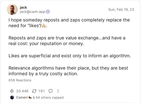 針對這場爭辯,傑克·多西(Jack Dorsey)在Nostr上發文,並將其命名為「#zapgate」。