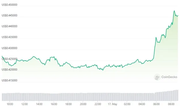 據外媒報導,此事件對 Ripple 而言是一場勝利,消息釋出後瑞波幣價格立刻上漲,截稿前瑞波幣價格報 0.445 美元,過去 24 小時上漲 4.4%,過去 7 天瑞波幣價格上漲 3.6%。