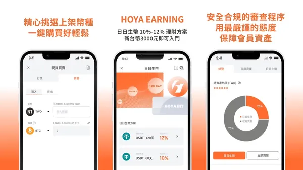 但HOYA BIT捨棄了大多數的金融交易服務,並採用明亮簡潔的介面設計,降低用戶使用的壓力與焦慮感。