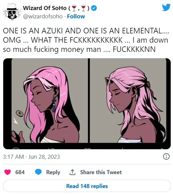 更讓人失望的是,很多社群成員發現,這系列的美術風格和Azuki差不多。紛紛表示,既然頭像都長得差不多,爲什麼還要花16枚以太坊買Azuki,直接買2枚以太坊的Elementals不就好了?
