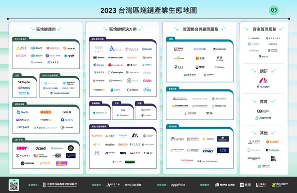 由「比特幣及虛擬通貨發展協會」主辦,「None Capital 拓荒資本」及 「WEB3+」 所共同協辦製作的《2023台灣區塊鏈產業生態地圖》,已於六月中旬「 2023 未來商務展」上發布,而《2023台灣區塊鏈產業關鍵報告》,於 7 月 4 日正式發佈,旨在呈現台灣區塊鏈產業的最新動態和發展趨勢。
