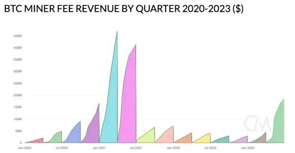 隨著比特幣($BTC)價格飆升站上3萬美元大關,「比特幣發幣」的BRC-20代幣蓬勃發展, 全體比特幣礦工光2023年第二季,就從交易手續費中賺取了高達1.84億美元(新台幣57.49億元)的收益 ,遠遠超過他們在2022年一整年度的營收。