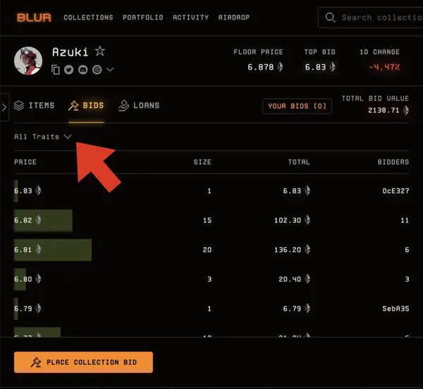 使用方式也很簡單,只要在出價(BIDS)功能中,找到「All Traits」選項並點按,即可選擇自己想要出價的特徵。