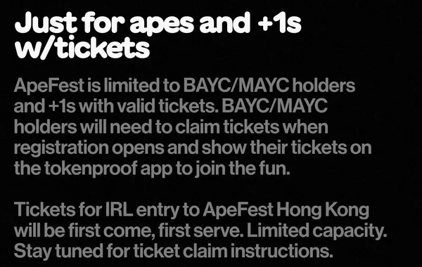 和去年在紐約舉辦的ApeFest相同,這次在香港的Apefest也是透過「TokenProof」來發放門票,當作入場的證明。