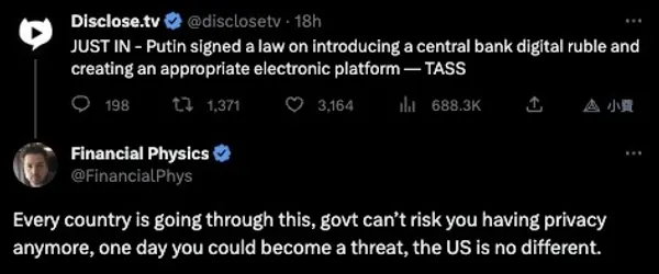 不過,有些社群成員對於CBDC的迅速採用感到失望。一位推特用戶表示:「每個國家都在經歷這樣的情況(指採用CBDC),政府再也不能冒險讓你享有隱私權,因為有一天你可能成為威脅,美國也不例外。」