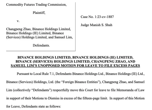 幣安甚至要求,提交超過15頁簡報的限制,希望增加到50頁,以達到更詳盡的說明。表示,這是為了反駁CFTC提起訴訟的複雜性,被告人需要駁斥回動議的文件數量。
