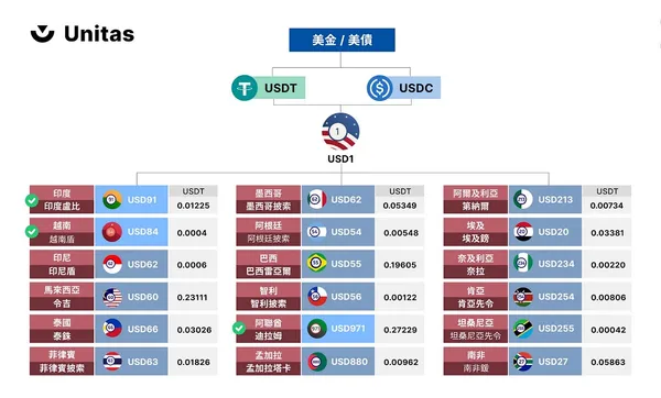 Unitas 協議開放所有人用 USDT 鑄造單位幣,其核心概念是將美金穩定幣,切割成當地貨幣的一單位。