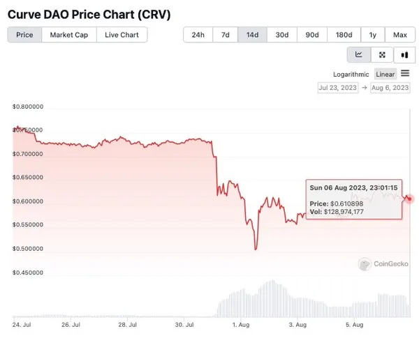 經過這一連串與駭客的談判,也讓$crv幣價從近期的最低點0.5美元攀升到目前的0.6美元。