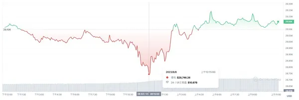 比特幣(Bitcoin)在8月7日華爾街開盤後,由於大量的現貨拋售,導致比特幣價格走低,價格更一度跌破28,800美元。