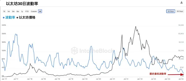 以太坊的波動率創歷史新低