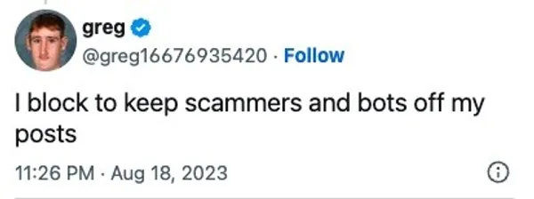 時常在社群與馬斯克互動的知名用戶Greg,也表示支持封鎖功能,他說:「封鎖是為了避免詐騙者和機器人干擾我的推文。」