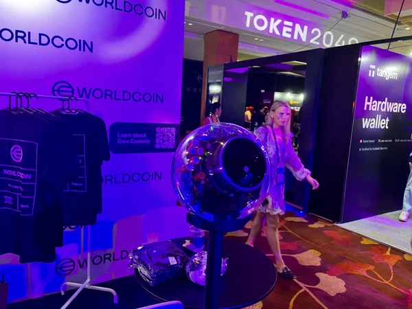 世界幣團隊這次也有在Token 2049設攤,並擺設了好幾顆用來驗證用戶身份的「虹膜掃描儀器Orb」,吸引現場不少用戶排隊掃眼睛,是展會中最熱門的攤位之一。