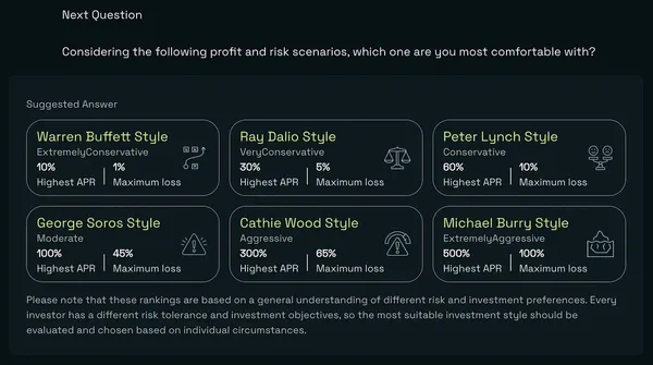 在 REYIELD 平台上只要輸入你的預計投入資產、期望收益、可以承擔風險程度,REYIELD AI 助手會協助你在 DeFi 平台上找到最適合你的資產配置,讓新手投資者輕鬆建立自己的投資組合,無需經歷長時間的試錯,就能夠得到適合自己的資產配置比例。