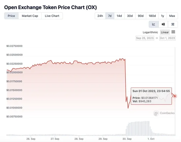 然而,隨著朱溯被捕的消息傳出,OPNX的代幣OX價格暴跌,目前僅為0.013美元。