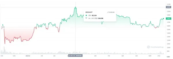 從過去歷史表現來看,2023年3月和2023年5月,也出現以太坊Coinbase溢價指數連續20天呈現正值的情況,而當時以太幣價格兩次突破2,000美元大關。