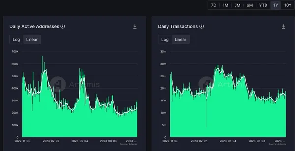 從日活躍地址和日交易筆數來看,Solana 上活躍交易自 FTX 暴雷後沒有預想中的下滑嚴重。