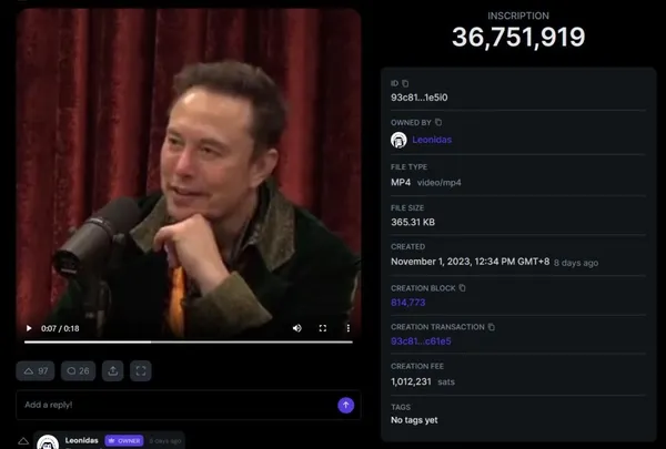 在馬斯克批評 NFT 的同時,他的評論也強調了比特幣 Ordinals(亦稱比特幣 NFT)的好處。Ordinals 將圖像數據永久儲存在比特幣區塊鏈上,使其更去中心化,不受第三方的依賴,這使 NFT 更具防僞性。