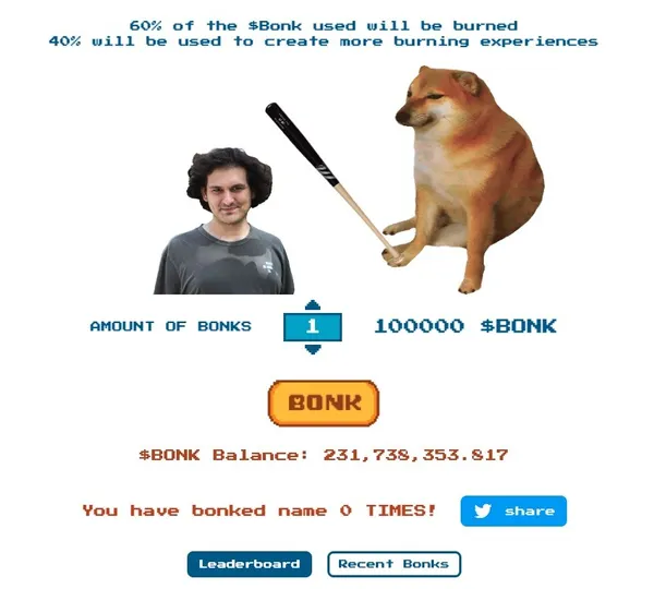 為了進一步釋放社群情緒,社群成員甚至開發了一款$BONK迷因遊戲「Felt angry, bonked Sam again, felt great(憤怒時,就敲一敲SBF,感覺真好)」,讓玩家使用$BONK敲打代表SBF的角色,舒壓之外也象徵著反抗不公。
