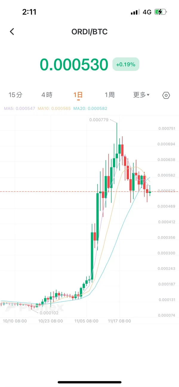 如上週週報所述,ORDI 身為銘文龍頭有開始降溫的趨勢,本週持續下跌,在技術面上可以看到一個明顯的頭部,在短期內要一口氣上升反攻,並不是件易事。其他銘文 RATS、SATS 也面臨大幅修正。