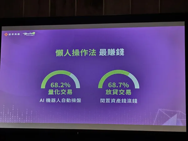 調查發現, 現貨交易、合約交易和質押是最多人使用的交易方式 ,運用閒置資產錢滾錢的放貸交易有獲利的人比例高達68.7%,使用AI機器人幫忙操盤的量化交易有獲利的人高達68.2%,其他由比例高低依序是流動性挖礦67.5%、GameFi 67.3%、質押 66.7%、NFT 65.7%、合約交易64%及現貨交易62.2%。