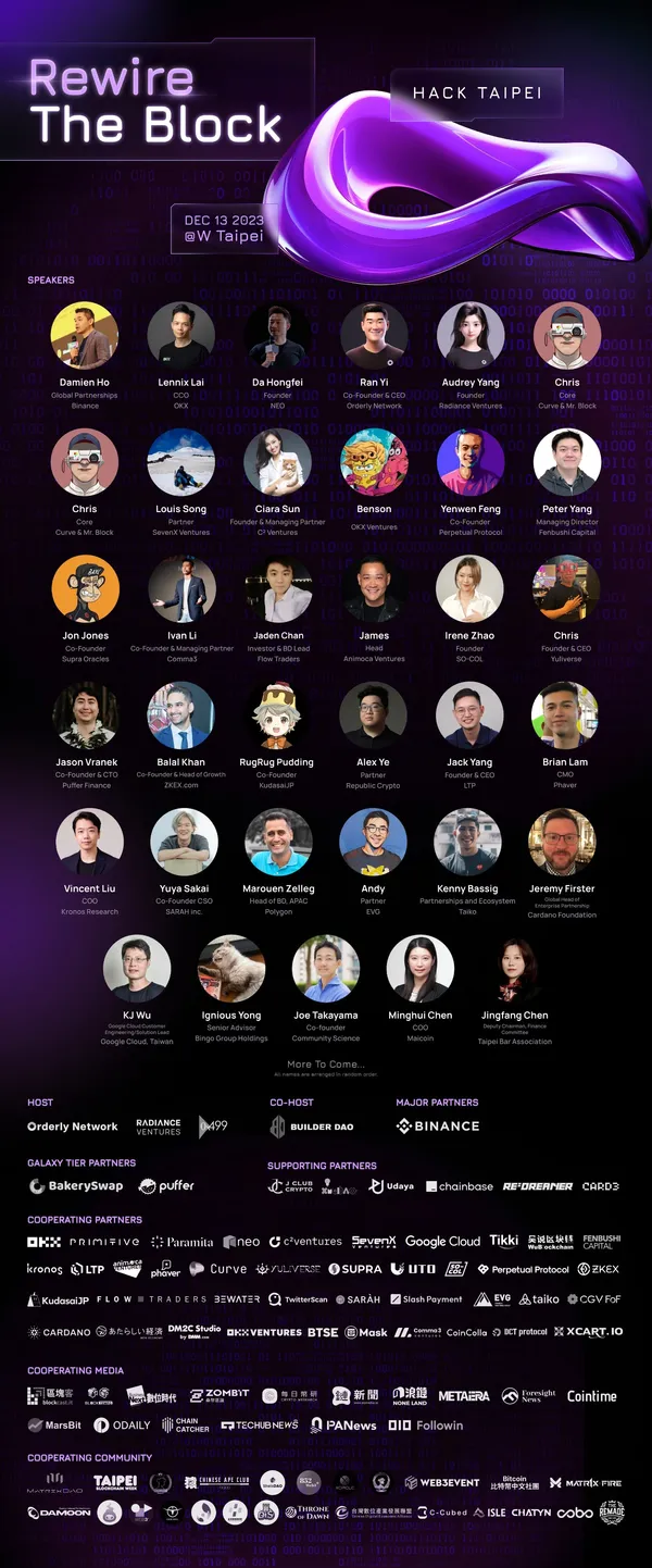 面對目前區塊鏈與加密貨幣領域的上行趨勢,包括DeFi基礎設施提供商Orderly Network、Radiance Ventures和0x499在內的區塊鏈產業領導者們,將攜手共辦本次「Hack Taipei」活動。