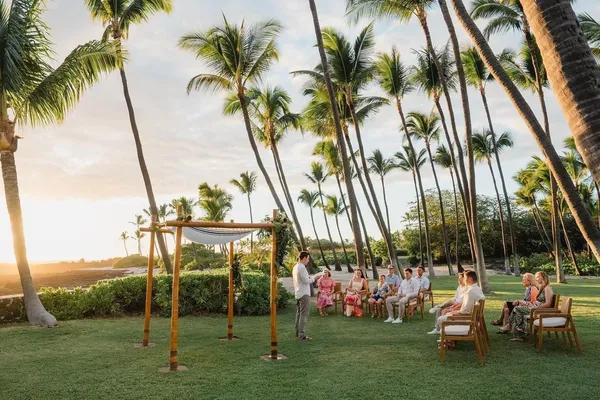 從流出的照片可以看到,婚禮地點選在一個被棕櫚樹環繞的海邊,非常低調只邀請部分家人和朋友出席,現場出席賓客不超過20人,背景還有一道灑落的夕陽,氣氛溫暖浪漫。