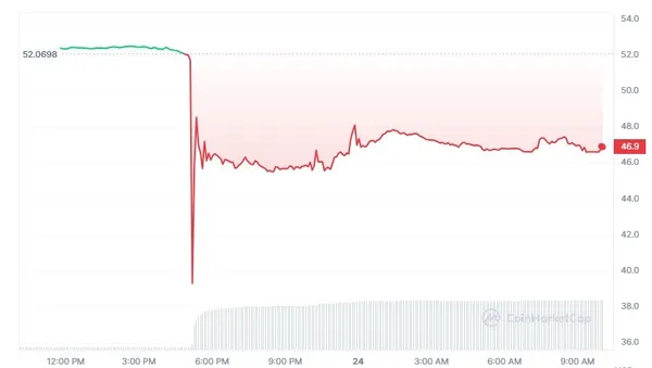 經過一天的時間,目前幣價已經恢復正常。截至文章發稿前,根據CoinMarketCap數據,OKB已從25.17美元的低點,回升至45.64美元,24小時交易量增長了2,100%至7900萬美元。