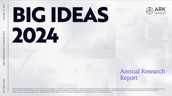 針對 2024 年的比特幣產業發展,由女股神 Cathie Wood 帶領的方舟投資(ARK Invest ),就在一份名為「Big idea 2024」的報告中,針對新一年的科技金融產業、區塊鏈、去中心化以及比特幣本身,做了一番深入的研究與調查。