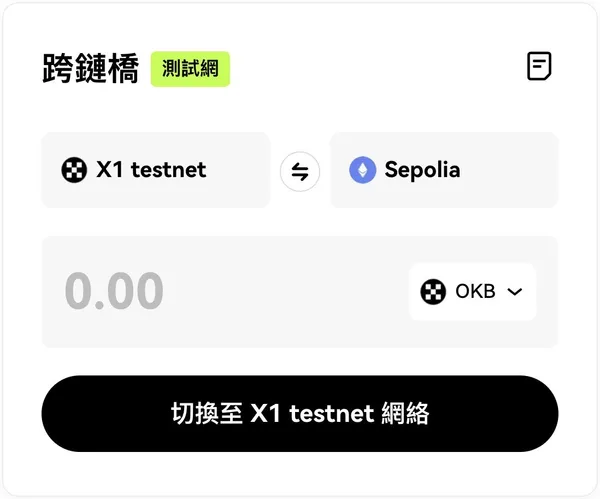 一樣在 https://okx.com/hk/x1/bridge-test把 X1 上的資產跨回 Sepolia ETH。