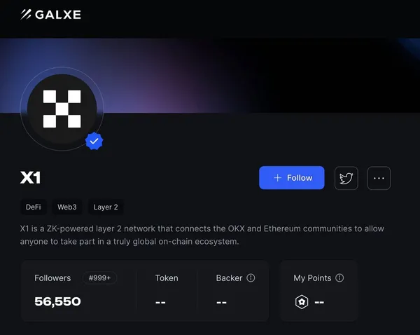 密切關注 @Galxe,前往 X1 的 Galxe,等待新任務出現,完成任務。