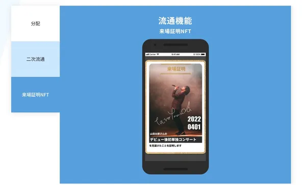 伊藤指出,透過發行「到場證明 NFT」,也就是所謂的 NFT 票根,就能用電子化的方式,方便用戶回憶使用電子票券參加過的各種活動。