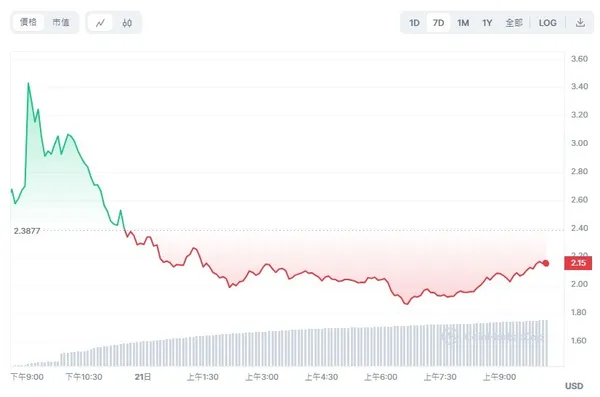 根據CoinMarketCap的數據顯示,STRK的交易價格在經過一段時間後,大多落在3至4美元之間,總市值超過21億美元。撰稿當下,幣價已回落至2.08美元。