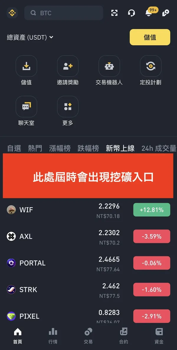 - 一鍵質押 $BNB 或 $FDUSD: 在 3 月 14 日新幣挖礦池開啟後,用戶可以在幣安首頁 APP>新幣上線分頁找到挖礦入口。