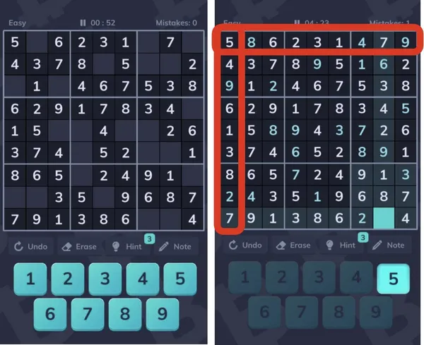 首先,不要被名稱嚇到,數獨並不是任何數學難題,而是單純的「填空格遊戲」,玩家需在每個 9 宮格中,不重複的填入數字 1-9,同時整體的每一個行、列也必須有 1-9,且不能有重複的數字。